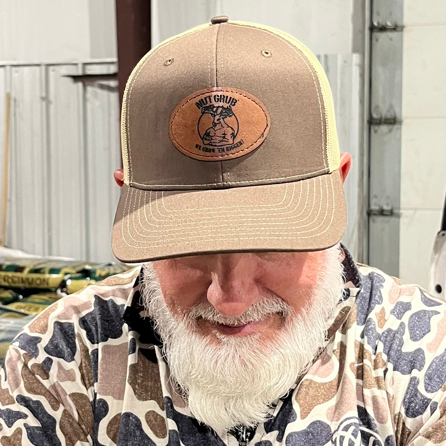 Bring the hunt everywhere you go with the Nut Grub Buff Buck Trucker Hat. Built for hunters, land managers, and anyone who lives the outdoor lifestyle, this snapback cap combines comfort, durability, and heritage style. Featuring our famous “We Grow ’Em Bigger” tagline and Buff Buck logo on a genuine leather patch, this hat makes a statement at camp, in the field, or around town.